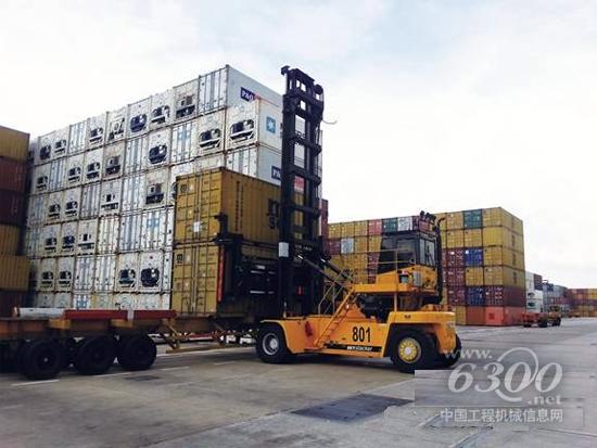 延續(xù)空箱堆高機(jī)銷售的良好勢(shì)頭,將廈門國貿(mào)集團(tuán)2臺(tái)空箱堆高機(jī)新訂單收入囊中后,又于11月底正式與新加坡港務(wù)集團(tuán)(PSA)簽訂9+3臺(tái)特殊板臺(tái)專用雙箱堆高機(jī)。該特殊板臺(tái)專用雙箱堆高機(jī)是專為PSA設(shè)計(jì),用于新加坡港專用的4x40’空箱運(yùn)輸模式。