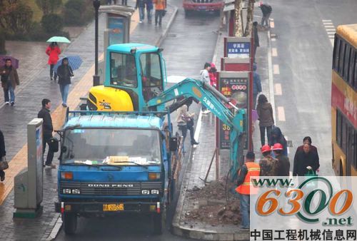 據(jù)現(xiàn)場的工作人員介紹,把挖掘機(jī)放在貨車上作業(yè),能夠方便地移動作業(yè);由于是履帶式掘機(jī)機(jī),放在貨車上作業(yè),也能減少對路面的損壞。