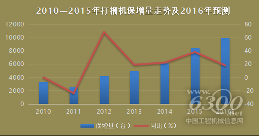 國(guó)內(nèi)眾多地區(qū)針對(duì)秸稈回收機(jī)械購(gòu)買(mǎi)予以累加補(bǔ)貼的政策支持,并倡導(dǎo)多種項(xiàng)目立項(xiàng)快速形成群體化產(chǎn)業(yè),加之用戶對(duì)打捆機(jī)產(chǎn)品的剛性需求,市場(chǎng)調(diào)查顯示,截至今年10月中旬,累計(jì)銷售各種型號(hào)的打捆機(jī)9800余臺(tái),同比增幅18%左右。從近年市場(chǎng)走勢(shì)分析,國(guó)內(nèi)打捆機(jī)械在經(jīng)歷了2011年20%以上的同比下滑后,2012年實(shí)現(xiàn)68%的爆發(fā)式增長(zhǎng)(這與當(dāng)年玉米機(jī)械爆發(fā)增長(zhǎng)同步),2013年~2015年進(jìn)入同比增長(zhǎng)20%左右的快速發(fā)展期,2016年市場(chǎng)需求持續(xù)穩(wěn)步上行。