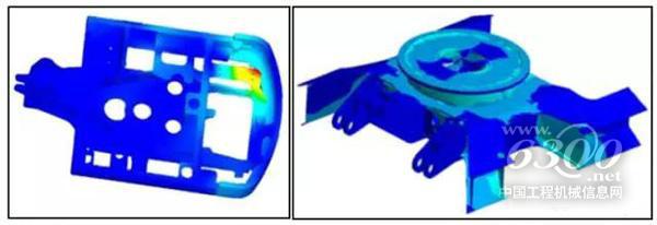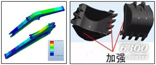 ?。?)通過CAE技術(shù),模擬動(dòng)臂斗桿最大受力工況,對其應(yīng)力集中區(qū)域進(jìn)行結(jié)構(gòu)分析,并進(jìn)一步優(yōu)化結(jié)構(gòu),保證其高可靠性;