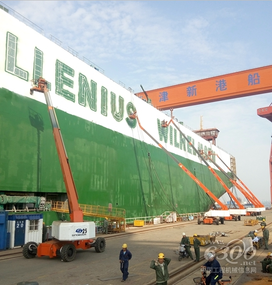 星邦直臂式高空作業(yè)平臺(tái)在天津新港作業(yè)