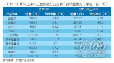 2015-2016年上半年工程機(jī)械行業(yè)主要產(chǎn)品銷售情況
