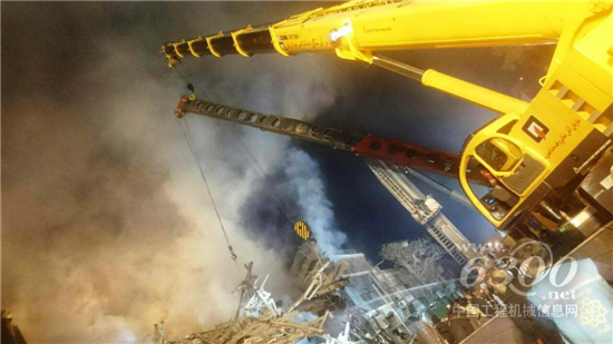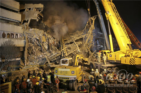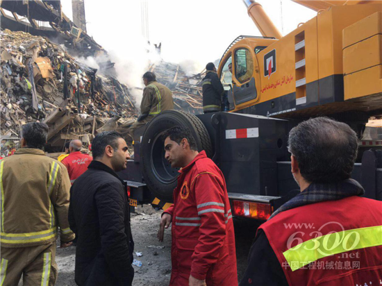 徐工伊朗總經(jīng)理唐光介紹說:“我們早上9點半左右接到電話,然后就迅速組織服務團隊,首先選派伊朗市場最大噸位的汽車起重機QY130趕赴火場,配合消防人員、緊急救援人員起吊廢墟中的重物,同時,我們還準備了數(shù)臺裝載機、挖掘機在災區(qū)周圍隨時待命。”