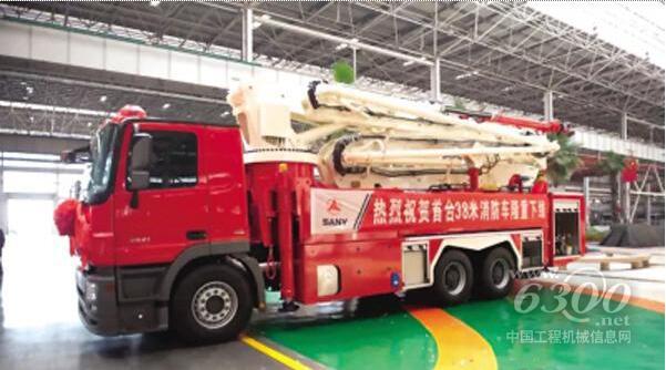 近日,全新的三一38米消防車在三一重工18號廠房下線