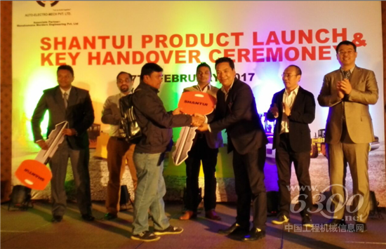 活動中,朱志及山推尼泊爾代理商分別就山推的發(fā)展歷史、產品優(yōu)勢及山推在尼泊爾市場的發(fā)展規(guī)劃分別向來賓進行了介紹;并向近期采購山推產品的用戶舉行了鑰匙頒發(fā)儀式?,F(xiàn)場開展了多種形式的促銷活動,先后簽訂近十臺平地機和挖掘機訂單,為2017年山推在尼泊爾市場的進一步開拓贏得了開門紅!