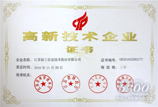 徐工信息獲國家高新技術企業(yè)稱號