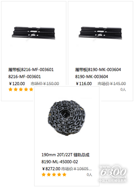 ?。?)挖掘機(jī)履帶板,190mm節(jié)距,適配小松,徐工,三一,山河智能等挖掘機(jī),商品編碼為8190-MA-003603,還有適配神鋼SK200、SK220、卡特彼勒CAT320等挖掘機(jī),商品編碼為8190-MK-003604,活動(dòng)期間讓利冰點(diǎn)價(jià)均低至116元。