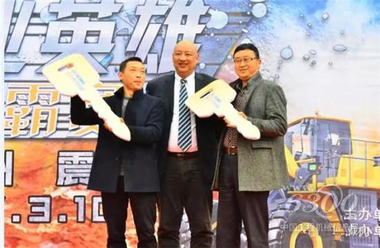 在3月10日中國好鏟車“鏟業(yè)英雄”爭霸賽現(xiàn)場,秦部長(左一)代表萬州港接到徐工裝載機(jī)金鑰匙,徐工與萬州港的合作更進(jìn)一步