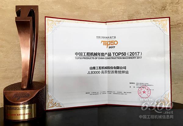 山推JLB3000高原型瀝青攪拌站榮獲中國工程機(jī)械年度TOP50獎(jiǎng)