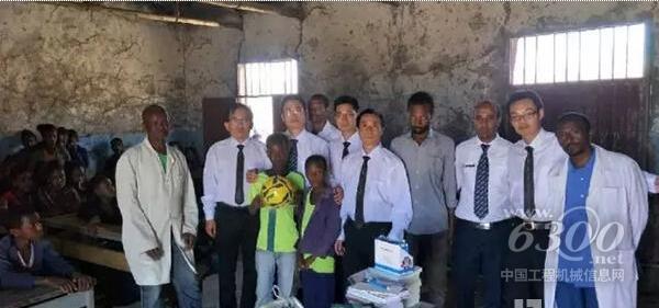 時間緊任務(wù)重,為了擠出時間去看孩子們,范云鵬5個人更加努力的工作,終于高質(zhì)量高效率的完成工作任務(wù)。他們婉拒了埃方安排的游覽并表達了希望看望當(dāng)?shù)睾⒆觽兊囊庠?,埃方客戶深受感動。一早,他們一行人員背著包裹,在代理商的陪同下,坐了兩個小時的汽車,來到了當(dāng)?shù)氐囊凰W(xué)。說明來意后,校長激動的握著范云鵬的手,深切的表達著謝意。范云鵬向孩子們介紹了中國,介紹了徐工,把書本、筆等物品遞到孩子們手中,鼓勵他們好好學(xué)習(xí),將來有機會可以來中國看看,可以加入徐工全球大家庭??粗⒆觽兛释拖矏偟难凵?,范云鵬等人被孩子們的淳樸和可愛感動了,他們紛紛拿出之前兌換的5000比爾幣,約合3000元人民幣送到了校長手中,用于改善孩子們的學(xué)習(xí)條件。
