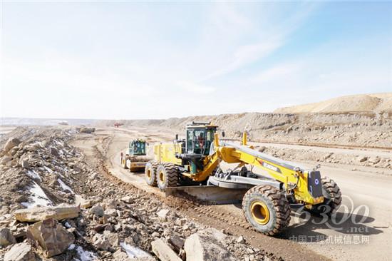 施工過程:徐工GR5505礦用平地機搭載的是康明斯535馬力變功率發(fā)動機,能為整車提供充沛動力,完全滿足不同地質(zhì)地貌的路面平整施工,即便是近35°的坡道施工也是游刃有余;該機配備了經(jīng)過優(yōu)化曲率的高強度鏟刀,具有自動越障功能,在路面平整過程中,徐工GR5505 “力大處,步步千鈞;力巧處,舉重若輕”,角力與靈活相得益彰。刮平后的路面,經(jīng)過徐工大噸位壓路機壓實后,路面平整度與堅實度完全符合煤礦道路運輸管理標(biāo)準(zhǔn),確保了礦道行車安全。