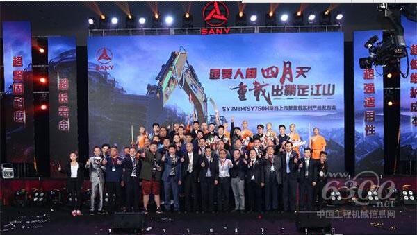 SY395H/750H挖掘機(jī)上市 三一重機(jī)完成重載系列全工況布局。圖為上市活動(dòng)現(xiàn)場與會(huì)嘉賓合影