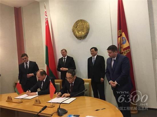 中聯(lián)重科董事長詹純新與莫吉廖夫州的涅克拉舍維奇副州長,在湖南省委書記杜家毫和莫吉廖夫州多瑪耶夫斯基見證下簽訂垃圾綜合處理項目合作意向。