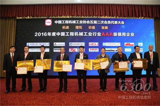 李殿和代表山推股份公司接授2016年工程機械企業(yè)AAA級信用等級評價證書和牌匾