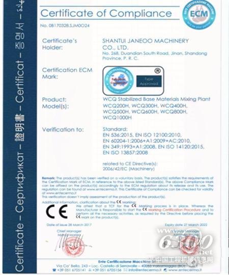 山推建友取得穩(wěn)定土拌合站CE認(rèn)證