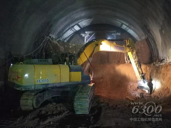 在銀西高鐵甘寧段隧道2標(biāo)段的隧道中,一臺(tái)徐工XE305D隧道挖掘機(jī)正在高效地進(jìn)行著隧道挖掘工作。該隧道土質(zhì)屬黃土高原Ⅳ級(jí)硬土,施工方之前使用的開(kāi)采方式因?yàn)殚_(kāi)采面距離高、弧形面范圍小導(dǎo)致效率很低。