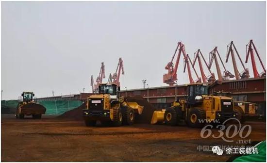 徐工9噸級(jí)裝載機(jī)在某沿江港口與國外品牌裝載機(jī)同臺(tái)競技