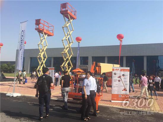 圖為JLG在租賃峰會(huì)上展出電動(dòng)剪式高空作業(yè)平臺(tái)1932R和具有超強(qiáng)防護(hù)能力的1100系列直臂式高空作業(yè)平臺(tái)