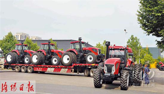 近日,在中國(guó)一拖集團(tuán)有限公司,10臺(tái)220馬力“東方紅”輪式拖拉機(jī)陸續(xù)裝上貨車,將駛往滿洲里口岸出口俄羅斯。