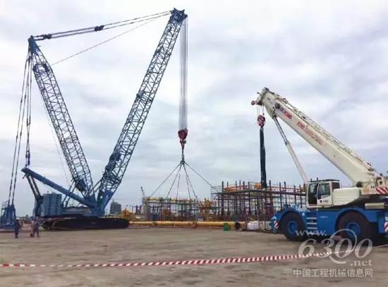 徐工履帶起重機、越野輪胎起重機在剛果(布)黑角石油港口聯(lián)合施工