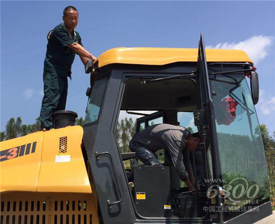 第一站,小組成員來到惠清高速十二標(biāo)段某路橋公司所在工地。該單位近年來陸續(xù)購買了2臺SD16TL推土機(jī)和2臺SR26M-3壓路機(jī)。到達(dá)現(xiàn)場后,走訪小組首先給用戶送上節(jié)日的問候與祝福。正在進(jìn)行筑路作業(yè)的是用戶于2017年3月份購買的一臺壓路機(jī),目前已工作300余小時,據(jù)用戶反映使用良好,特別爬坡能力優(yōu)于競品,服務(wù)人員也給用戶提出了操作保養(yǎng)的建議,并贈送濾芯。