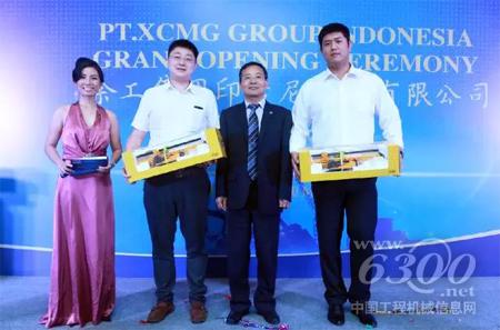 開業(yè)儀式上,中國(guó)駐印尼大使館經(jīng)商參處一等秘書胡嘯山先生、徐工集團(tuán)進(jìn)出口有限公司副總經(jīng)理扈向陽先生、印度尼西亞代理商GMT公司董事長(zhǎng)李錦財(cái)先生、印尼德龍朱明冬先生、印尼萬向鎳業(yè)馮祥寶先生一同為徐工印尼公司開業(yè)剪彩。