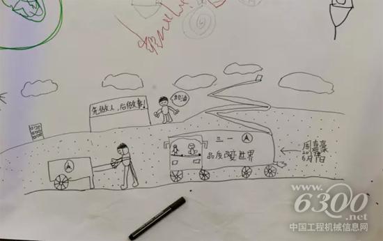 在參觀完18號廠房后,小朋友們來到了三一宴會廳,在這開展了形式多樣的游戲。工作人員還提供了畫紙和畫筆,小朋友們圍坐在長長的畫紙周圍,畫出了自己心目當(dāng)中的三一。一幅幅可愛的圖畫雖然稚嫩,但充滿了想象力,充滿了對三一的美好祝福。