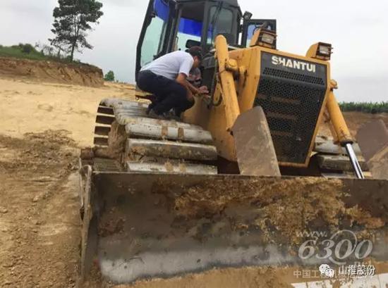 走訪小組第一站,來到個體用戶林老板設備所在工地。該客戶近年來陸續(xù)購買了3臺SD16TL推土機和1臺SL50W裝載機。正在作業(yè)的是用戶于2015年12月購買的一臺推土機,目前已工作2000余小時。據(jù)用戶反映,推土機在重載工作情況下會出現(xiàn)車頭擺動幅度大的情況。據(jù)此,服務人員立即對設備進行了檢查,判斷為機頭支架出現(xiàn)故障,并立即聯(lián)系準備相關備件進行更換。為用戶解決了后顧之憂,獲得用戶稱贊。