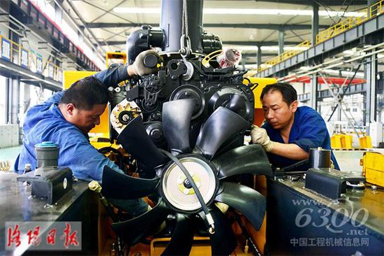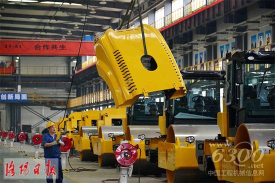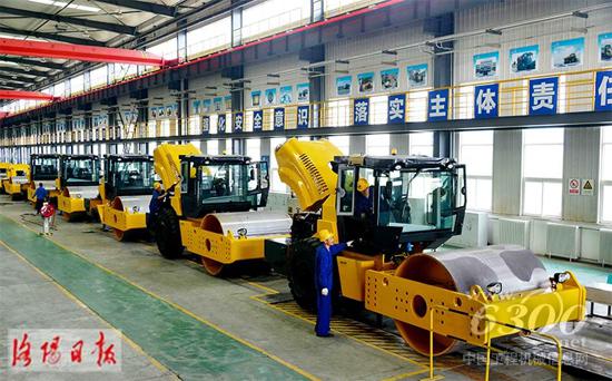近日,在國機重工(洛陽)有限公司的壓路機總裝線上,一批出口東南亞的壓路機正在裝配中。