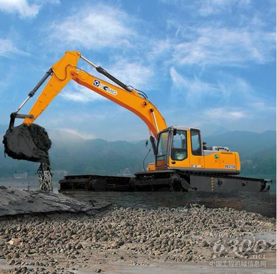 徐工XE215S水陸兩棲挖掘機(jī)是在XE215C成熟技術(shù)基礎(chǔ)上,針對灘土特點(diǎn)、氣候環(huán)境進(jìn)行研發(fā)設(shè)計,除具有一般挖掘機(jī)的功能外,還具有接地比壓低、水上浮航的特點(diǎn),適用于陸地、沼澤軟地面及淤泥及水面安全行走與作業(yè)的新型多用途挖掘機(jī)。該機(jī)器采用了自有的優(yōu)化動力、液壓系統(tǒng)和電氣系統(tǒng),作業(yè)效率和可靠性更高;新型密封式浮箱履帶行走結(jié)構(gòu),克服了水陸兩用液壓挖掘機(jī)行走系統(tǒng)易磨損、壽命短、阻力大、功耗高的不足;在維護(hù)保養(yǎng)、專場轉(zhuǎn)運(yùn)和工況通用性方面具有較強(qiáng)的市場競爭力。