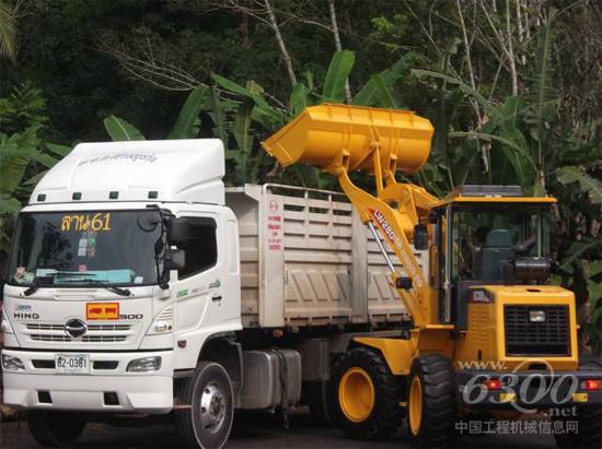 泰國運輸糧食的貨車比其他國家的貨車高度高1m左右,所以客戶提出要求,把裝載機的標(biāo)準(zhǔn)臂長加長1.2m,這樣裝載機才能順利把糧食倒在貨車上。
