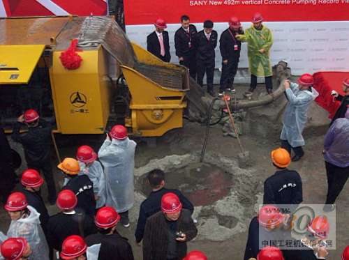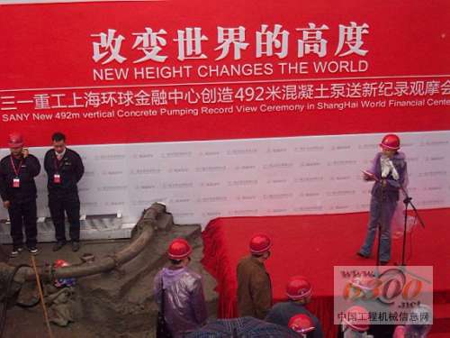 12月10日下午4時,在上海環(huán)球金融中心施工現(xiàn)場,伴隨著三一重工將混凝土輸送泵送至492米高空的最后一次澆注,這一國內(nèi)混凝土結(jié)構(gòu)第一高樓正式封頂。三一泵再次以獨創(chuàng)的超高壓泵送技術(shù),刷新自己五年前在香港國際金融中心創(chuàng)下的單泵垂直泵送406米的世界紀(jì)錄。