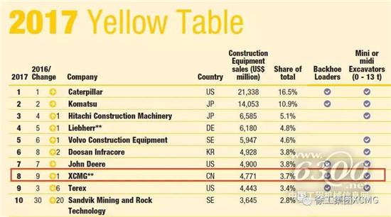 在2016年英國(guó)KHL世界最權(quán)威全球工程機(jī)械行業(yè)排名中,徐工位列全球第8位,是唯一進(jìn)入前10的中國(guó)工程機(jī)械企業(yè)。