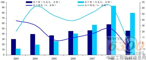 進(jìn)入 21 世紀(jì),裝備制造業(yè)的全球化趨勢(shì)日益明顯,中國(guó)具備了市場(chǎng)廣闊、勞動(dòng)力低廉、工程技術(shù)人員豐富及基礎(chǔ)設(shè)施良好等優(yōu)勢(shì),國(guó)際裝備制造業(yè)向中國(guó)進(jìn)行大規(guī)模產(chǎn)業(yè)轉(zhuǎn)移,在此背景下,我國(guó)重機(jī)行業(yè)既面對(duì)外資企業(yè)的競(jìng)爭(zhēng),也迎來(lái)了進(jìn)口替代及出口增長(zhǎng)的空間。在多種有利因素的促進(jìn)下,我國(guó)的重型機(jī)械出口已進(jìn)入快速發(fā)展階段,出口增速一直維持在較高水平。