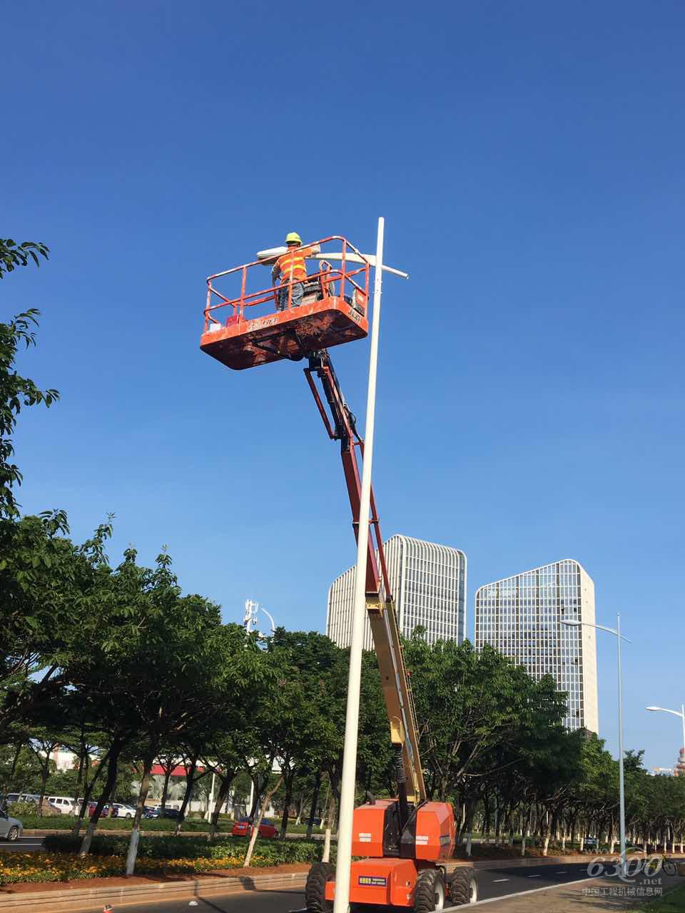 圖為捷爾杰 660SJ在廈門環(huán)島路進(jìn)行路燈桿刷漆作業(yè)
