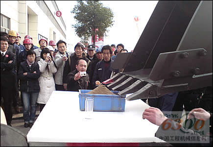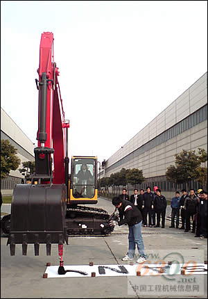 中國工程機械信息網(wǎng)(www.yuegoukeji.cn)記者現(xiàn)場獲悉,中國挖掘機協(xié)會秘書長陳正利先生以及三一重工向文波等領導和嘉賓親自為SY205C-8挖掘機揭幕。隨后三一重機公司組織媒體參觀生產(chǎn)線并到調(diào)試現(xiàn)場觀摩,其中調(diào)試場觀摩環(huán)節(jié)讓許多媒體印象深刻,只見操作手上機鳴笛,向觀眾做致意動作,挖機作各種集體動作,靈活的機臂竟然能夠用大號毛筆書寫三一的英文“SANY”,更神奇的是,挖掘機的挖斗可以準確的鏟起沙地里的一個生雞蛋,操作手的技術令人嘆服之余,也顯示出了三一重機在控制技術上的一絲不茍,精益求精的態(tài)度。