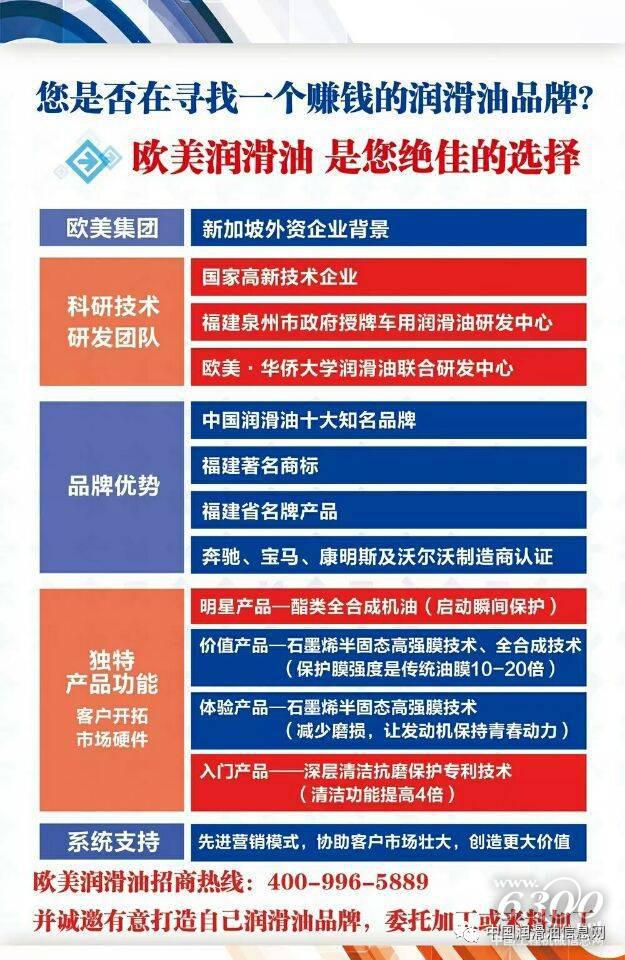 奮進新時代,開啟新征程,潤滑油行業(yè)也迎來了嶄新的發(fā)展機遇。作為國家高新技術(shù)企業(yè),歐美潤滑油始終穩(wěn)扎穩(wěn)打,以行業(yè)領(lǐng)先的雙膜技術(shù)升華——石墨烯半固態(tài)高強膜技術(shù)及深層清潔抗磨保護專利,回歸產(chǎn)品本質(zhì),提升服務(wù)價值,屢創(chuàng)佳績,引領(lǐng)中國潤滑油行業(yè)朝著高端化精細(xì)化方向昂首闊步!為中國汽車后市場和設(shè)備潤滑領(lǐng)域注入全新的動能,寫好轉(zhuǎn)型升級的新篇章,與廣大經(jīng)銷商和車主用戶攜手同心共圓強國夢。