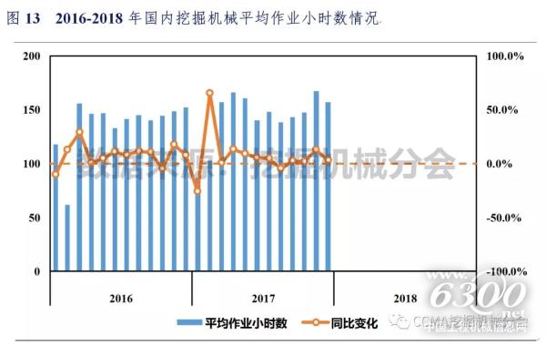 根據(jù)挖掘機械分會調(diào)研統(tǒng)計,2017年挖掘機械出勤小時數(shù)同比有所增加,2018年作業(yè)情況變化趨勢值得持續(xù)關注。