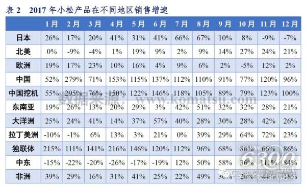 2018年1-2月,挖掘機械出口市場成為最大亮點,同比增長108.3%,出口銷量占總銷量比例達到11.6%。根據(jù)小松發(fā)布2017年世界各地產(chǎn)品銷售增速,全球絕大多數(shù)工程機械市場都在復蘇中,國內(nèi)各大主機企業(yè)也都加強海外市場的開發(fā),“一帶一路”倡議也為國產(chǎn)挖掘機械產(chǎn)品提供了重要的市場機遇。參考日本工程機械發(fā)展歷史,海外市場將是中國挖掘機械行業(yè)的下一個爆發(fā)點,看好未來挖掘機械出口市場潛力。