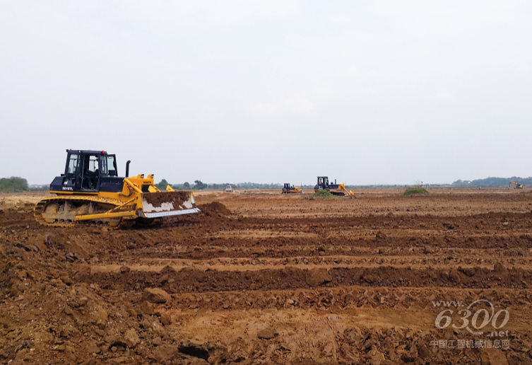 在陳老板的帶領下,走訪小組找到了正往工地查看施工情況的宋老板,一行一起前往施工現(xiàn)場。放眼望去,多臺推土機在農田中緊張忙碌著平整農田,服務小組人員和兩位老板詳細詢問了設備的使用情況,兩位用戶都不約而同的對山推的推土機給予高度評價。