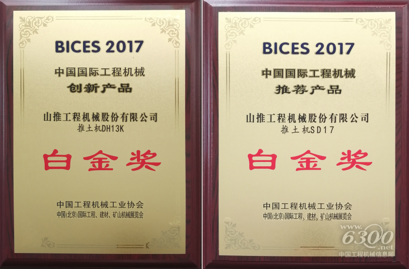 為提高中國(guó)工程機(jī)械產(chǎn)品在國(guó)際市場(chǎng)的競(jìng)爭(zhēng)力,助推國(guó)家工程機(jī)械產(chǎn)品的創(chuàng)新發(fā)展,會(huì)上頒發(fā)了2017中國(guó)國(guó)際工程機(jī)械創(chuàng)新、推薦產(chǎn)品獎(jiǎng)。山推榮獲三項(xiàng)白金獎(jiǎng),其中,山推DH13K全液壓推土機(jī)獲得“創(chuàng)新產(chǎn)品白金獎(jiǎng)”,SD17履帶式推土機(jī)獲得”推薦產(chǎn)品白金獎(jiǎng)”。