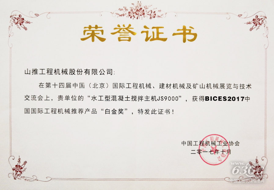 山推建友JS9000混凝土攪拌主機榮獲“推薦產(chǎn)品白金獎”。