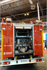 © 艾里遜變速箱搭載了艾里遜變速箱的消防車配備了Magirus MPH230泵,可保證10巴時(shí)的流量為2,000升/分鐘,40巴時(shí)流量為250升/分鐘。