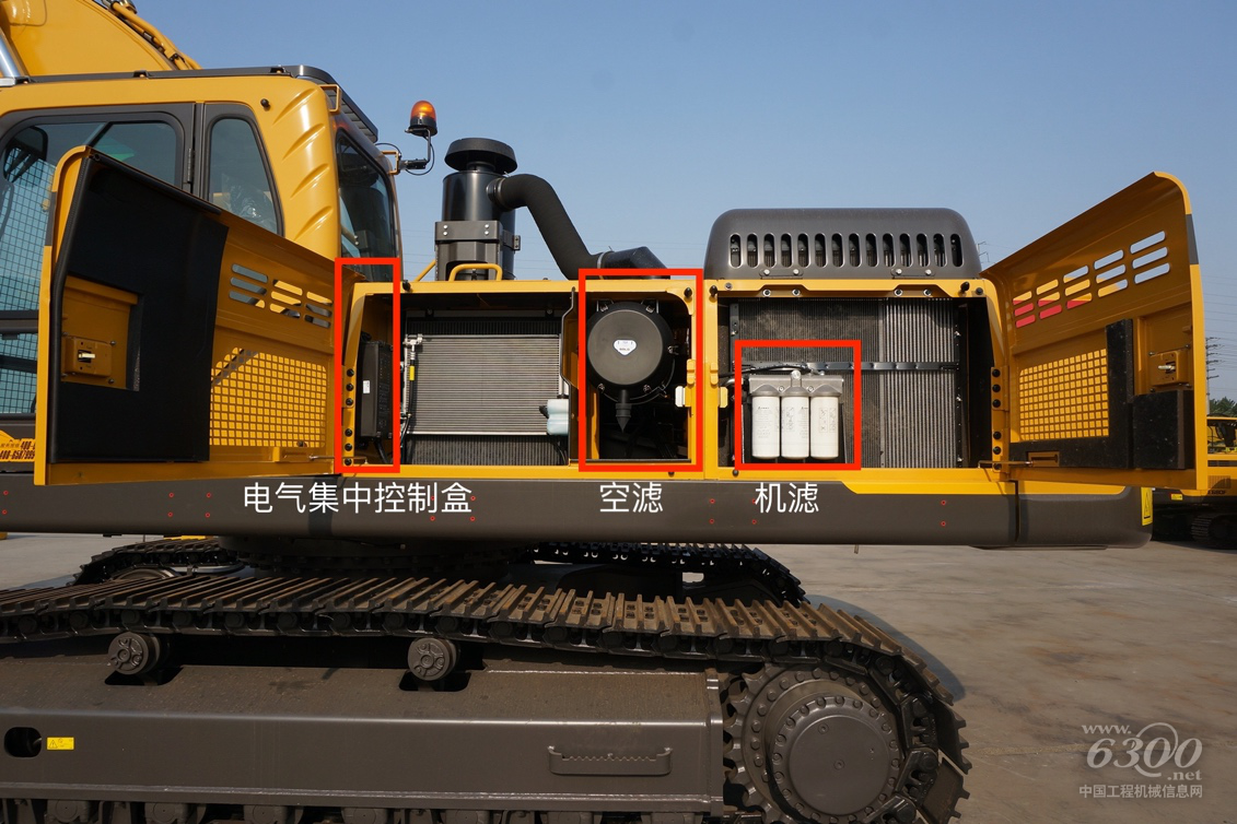 圖為:左機(jī)罩集中布置空濾、機(jī)濾、電氣集中控制盒