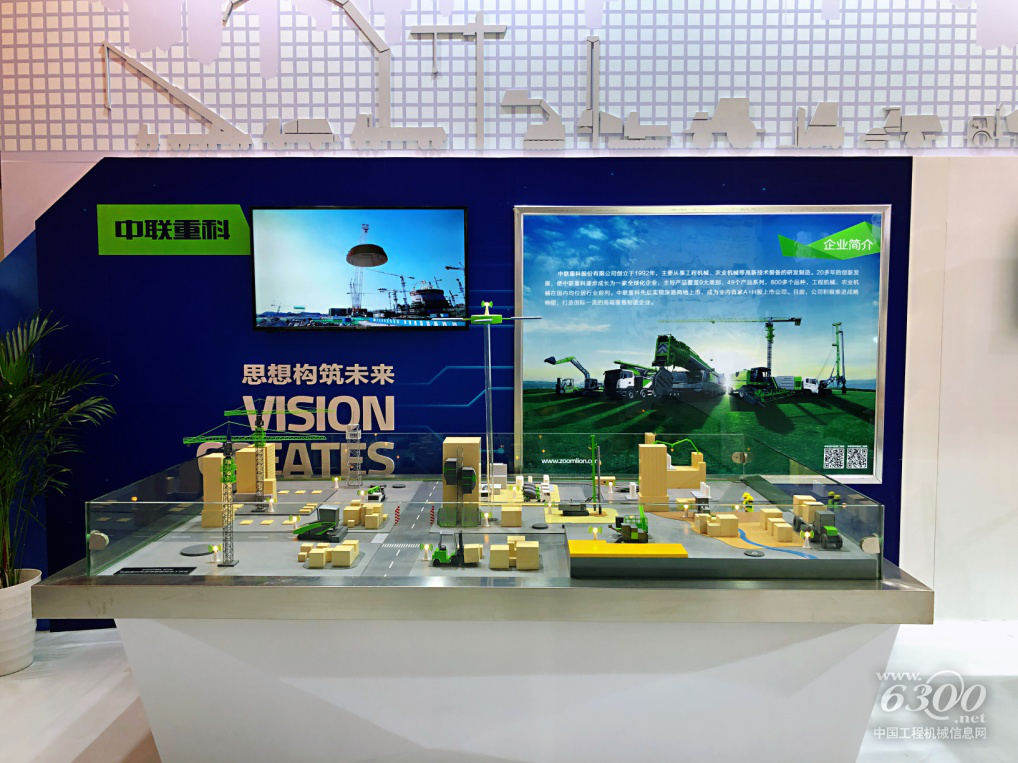 在展區(qū)現(xiàn)場,中聯(lián)重科通過現(xiàn)代展覽展示技術(shù)和手段,以滾動視頻、沙盤等方式,全方位展示中聯(lián)重科品牌的成就、責(zé)任與使命。
