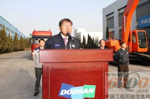 出廠儀式上,丁海益總經(jīng)理致辭,對參與DX260LC研發(fā)的人員表示衷心感謝,通過大家的共同努力,DX260成功上市,作為斗山挖掘機產(chǎn)品系列的新興勢力,經(jīng)過2000多種惡劣條件下質(zhì)量測試,具備更高作業(yè)效率和更低維護成本的獨特優(yōu)勢,必將成為廣大客戶信賴和支持的一款更具市場競爭力產(chǎn)品。