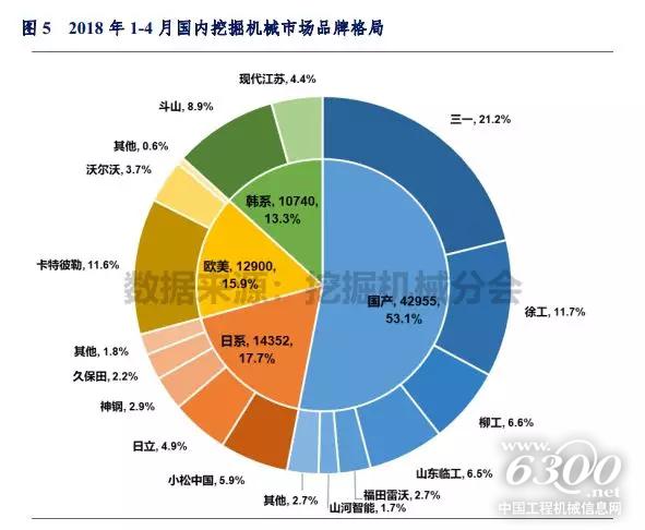 根據(jù)中國(guó)工程機(jī)械工業(yè)協(xié)會(huì)挖掘機(jī)械分會(huì)統(tǒng)計(jì)數(shù)據(jù),2018年1-4月納入分會(huì)統(tǒng)計(jì)的25家主機(jī)制造企業(yè)國(guó)內(nèi)市場(chǎng)銷(xiāo)售情況如表2所示。在2017年高基數(shù)條件下,依然實(shí)現(xiàn)快速增長(zhǎng)。