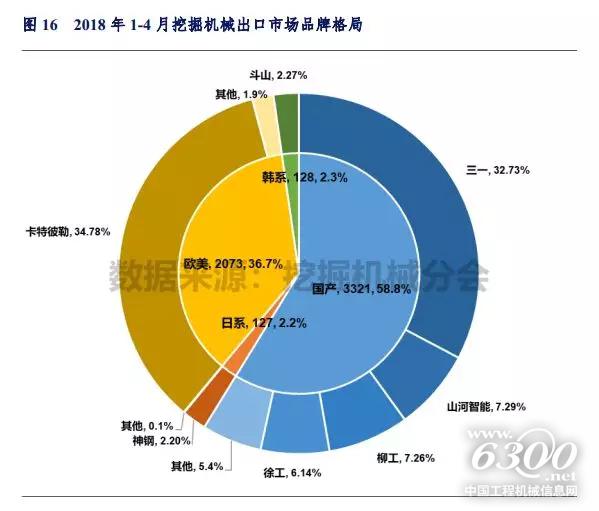 根據(jù)中國(guó)工程機(jī)械工業(yè)協(xié)會(huì)挖掘機(jī)械分會(huì)統(tǒng)計(jì)數(shù)據(jù),2018年1-4月納入分會(huì)統(tǒng)計(jì)的25家主機(jī)制造企業(yè)出口銷(xiāo)售情況如表4所示。在全球經(jīng)濟(jì)復(fù)蘇的大背景下,出口市場(chǎng)實(shí)現(xiàn)翻番式增長(zhǎng)。