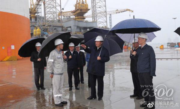 6月13日下午,習近平冒雨來到中集來福士海洋工程有限公司煙臺基地?!八{鯨1號”鉆井平臺巍峨佇立、“泰山”龍門吊高聳入云,習近平撐著傘邊走邊看,詳細了解企業(yè)走自主創(chuàng)新發(fā)展之路、開展高端海洋工程設備自主設計研發(fā)制造情況。聽說“藍鯨1號”去年創(chuàng)造了可燃冰開采時間和產(chǎn)量兩項世界紀錄,習近平鼓勵他們繼續(xù)努力??倳浲F(xiàn)場的工人們一一握手,他說,基礎的、核心的東西是討不來買不來的,要靠我們自力更生、自主創(chuàng)新來實現(xiàn)。我看你們有這個信心,希望你們迎難而上、再接再厲。