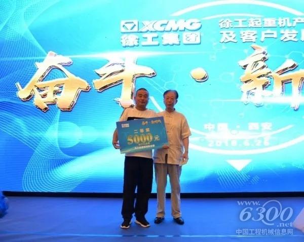 徐工集團(tuán)起重機(jī)械事業(yè)部西安代表處主任周燕青為客戶頒發(fā)金鑰匙